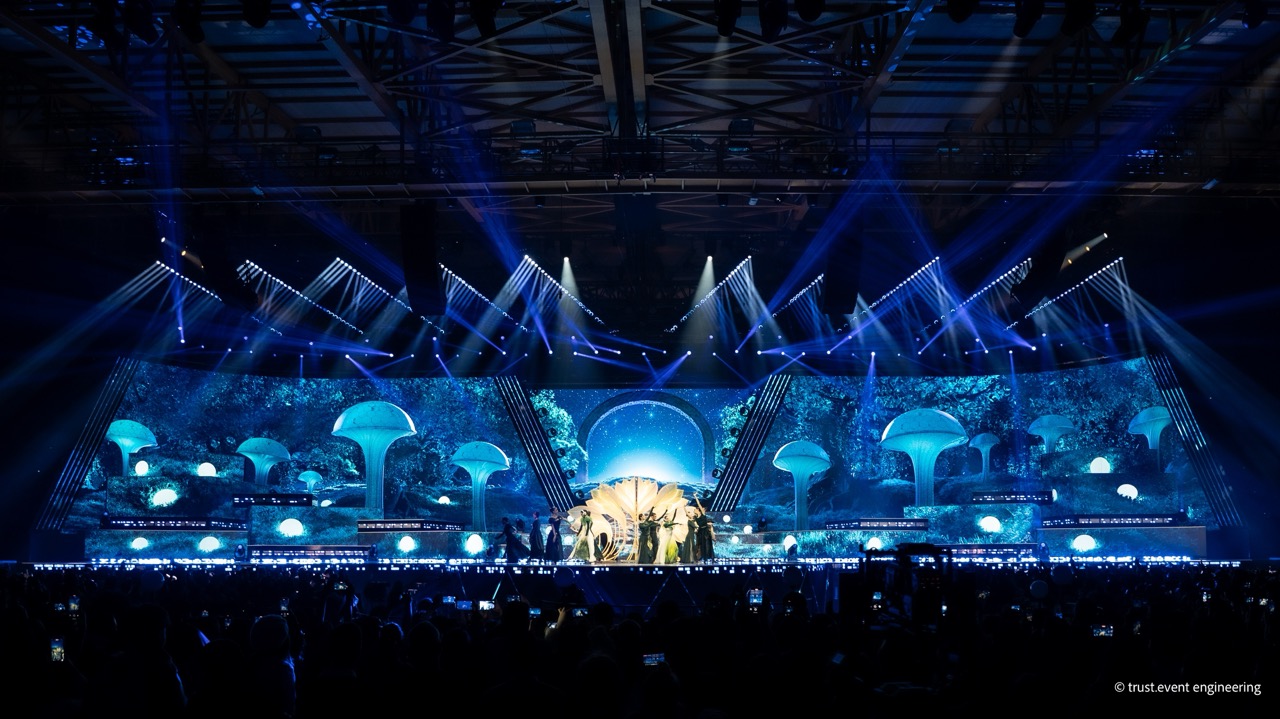 In Kombination mit einem klaren visuellen Konzept, eng integrierter Licht- und Mediensteuerung sowie einem hervorragend abgestimmten Operator-Team entstand eine Show, die ihr Motto „United by Music“ visuell eindrucksvoll umsetzte.
