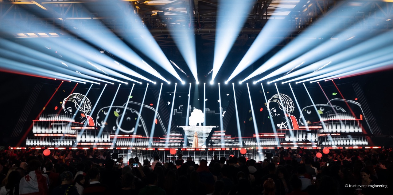 Das Ergebnis war ein stark videoorientiertes Bühnenkonzept, dessen präzise Geometrien und räumliche Struktur eine markante Alternative zu klassischen Song-Contest-Bühnen darstellten.