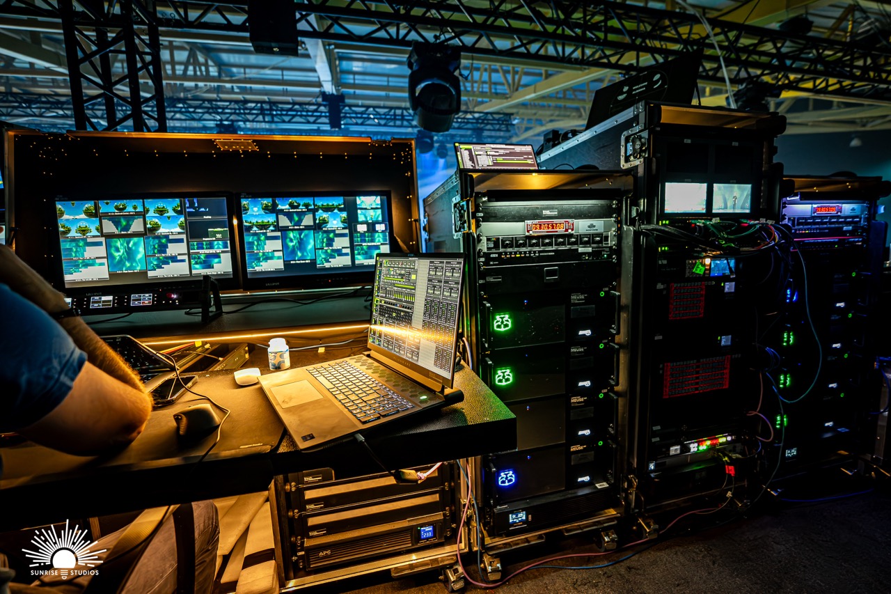 Insgesamt kamen fünf aktive Systeme sowie fünf redundante Backup-Systeme zum Einsatz. Das Server-Setup lieferte 16 unabhängige 4K-Ausgänge, die sämtliche LED-Flächen der Bühne versorgten. Zusätzlich steuerte das System drei Pixel-Mapping-Zonen über Art-Net, darunter videofähige LED-Streifen und architektonische Akzente.