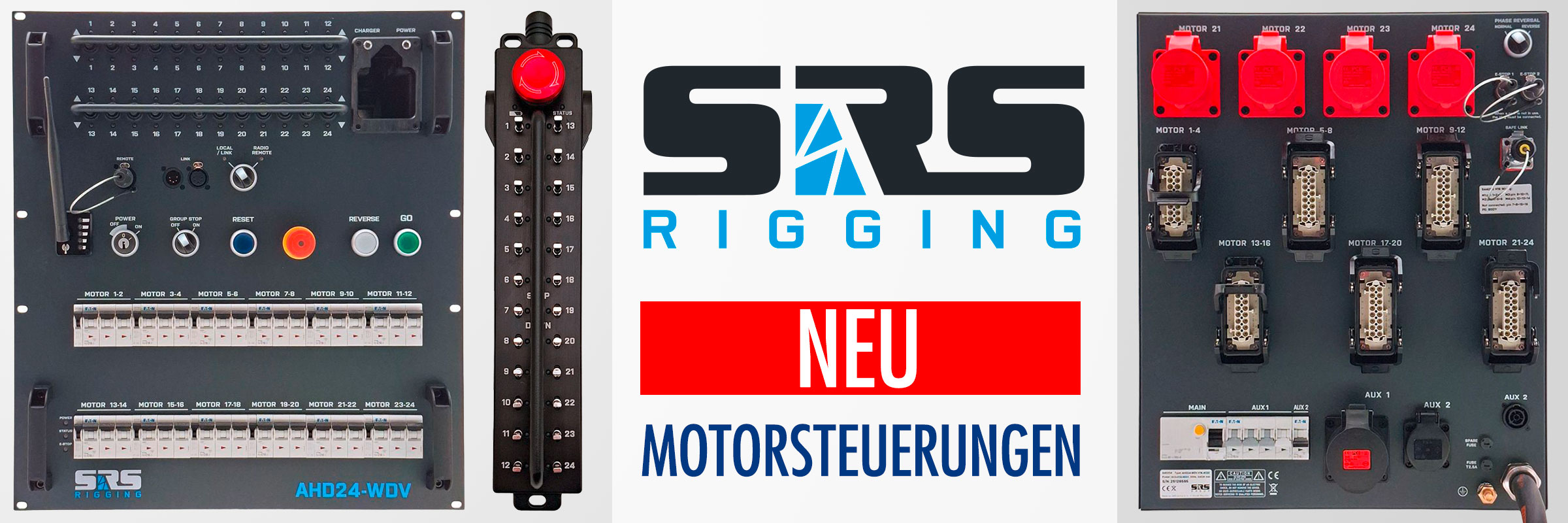 Die 24 kanalige digitale SRS Motorsteuerung AHD24-WDV in der 63A Version ist für den Betrieb von Elektrokettenzügen auf Basis der Direktsteuerung ausgelegt.