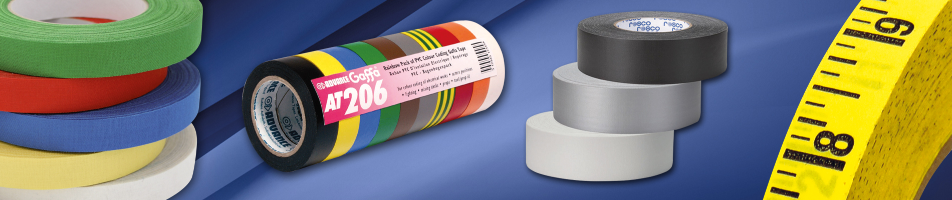 Unsere Klebebänder und Gaffa Tapes eignen sich ideal zum Fixieren, Kaschieren und Markieren. Egal, ob Sie Kabel sicher verlegen, Bühnenbilder gestalten oder Ausstellungsstände aufbauen müssen – mit unseren Produkten sind Sie bestens ausgestattet.